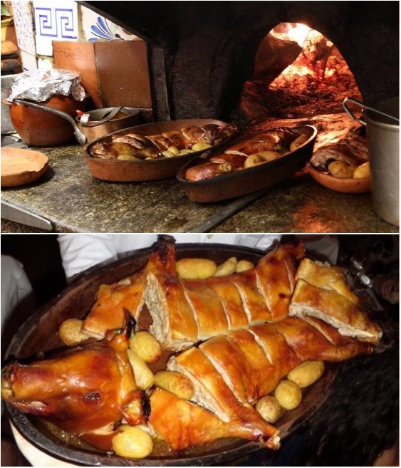 Фирменные молочные поросята с хрустящей корочкой готовят в печи, которая никогда не остывает (Ресторан Sobrino de Bot?n в Мадриде). | Фото: deadbees.net.