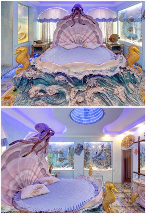 В апартаментах «Лагуна» можно оказаться в окружении морских обитателей и выспаться в уютной раковине (Отель «Замок снов», г. Домодедово). | Фото: 7z5.ru.