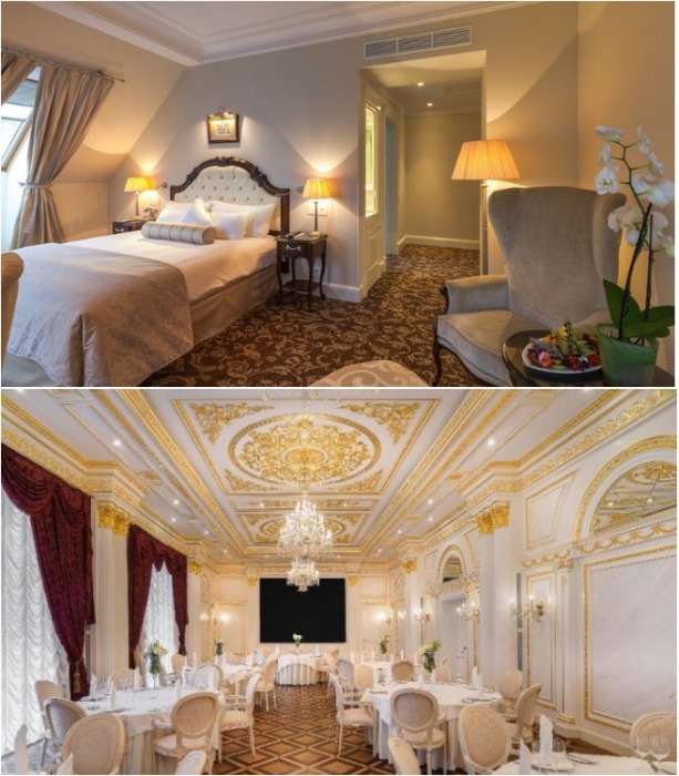 Несмотря на то, что в гостинице 126 комфортабельных номеров, но великолепное убранство ни в одном из них не повторилось. Помимо царской атмосферы самого интерьера, особого шарма придают швейцары в одеждах дворецких тех времен, которые любезно встречают гостей у парадной. Но и это еще не все - меню в ресторанах составлено на основе гастрономических пристрастий монархов и аристократов.