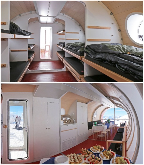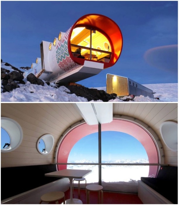 LeapRus считается самым высокогорным отелем Европы (Кабардино-Балкарская Республика). | Фото: sdelanounas.ru. В третьем модуле организована общая зона отдыха с лавками у окон, откуда открывается завораживающая горная панорама. В четвертой модульной капсуле находится санузел, душевые, прачечная, сушилка для одежды и комната для хранения спортивного инвентаря. Учитывая, что южный склон славится своими горнолыжными трассами, именно сюда устремляются потоки любителей сноуборда и лыжного спорта.