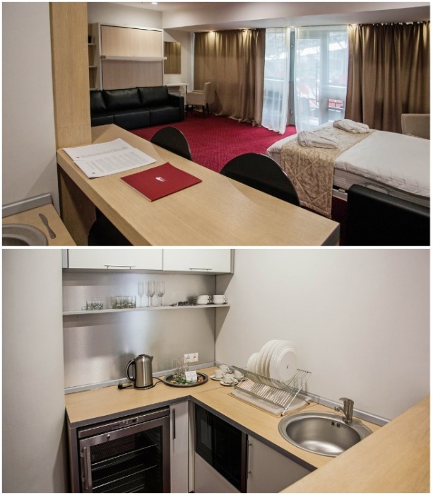 Помимо красочности и информативности интерьера гостиница может похвастаться тем, что в ней все сделано для удобства передвижения людей с ограниченными возможностями и все зоны отеля адаптированы под их потребности. Важно: За стандартный номер, в котором есть двуспальная кровать, ванная комната со всеми принадлежностями, мини-бар, мультимедийная система, кондиционер, телефон, интернет, мини-бар и даже сейф придется заплатить от 4,5 тыс. руб.