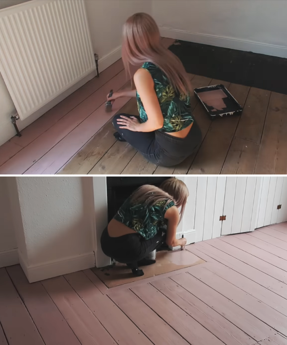 Пол пришлось вскрывать краской дважды, чтобы избавится от огрехов и неровности досок. | Фото: youtube.com/ LLimWalker .