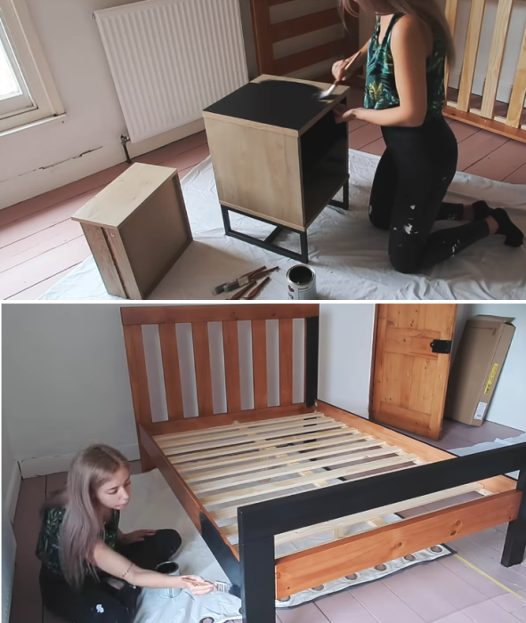 Чтобы мебель выглядела гармонично в обновленном интерьере, ее покрасили в черный цвет. | Фото: youtube.com/ LLimWalker.