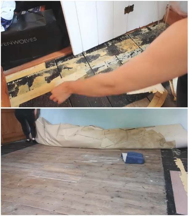 Напольное покрытие нужно было убрать, чтобы начать делать ремонт. | Фото: instagram.com/leannelimwalkerhome.