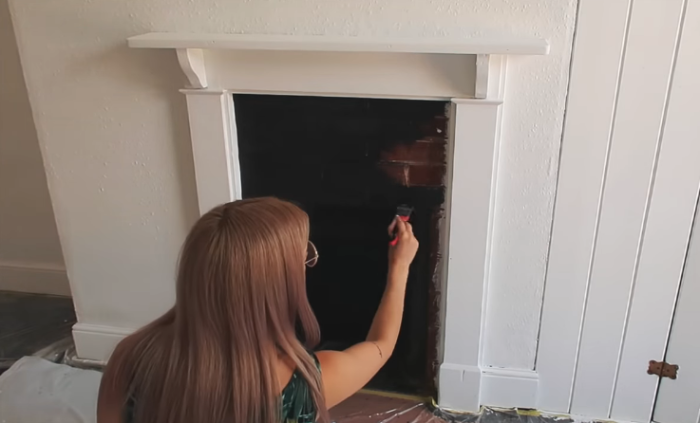 Кирпичную кладку Линн покрасила черной краской, для создания акцента. | Фото: youtube.com/ LLimWalker.