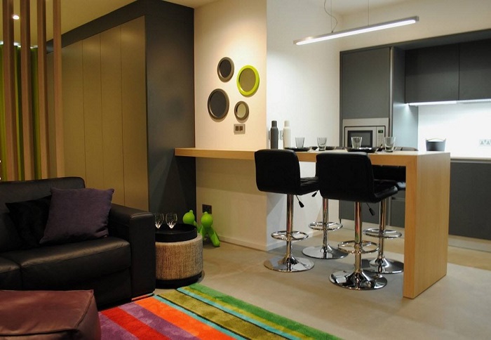 Барная стойка для зонирования пространства в квартире-студии. / Фото: dizainexpert.ru