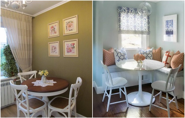 Несмотря на то, что круглый стол является самым популярным вариантом при обустройстве столовой на крохотной кухне, у него тоже есть ряд особенностей, которые необходимо учитывать.