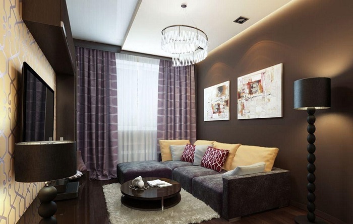 Темная отделка является врагом не только маленьких хрущевок, но и комнат с низким потолком, так как она «съедает» ценные квадратные метры и высоту. Поэтому либо выбирайте светлую отделку, либо выкрашивайте стены в темный, а потолок в белый, кофейный, бежевый. Но второй вариант подойдет лишь для больших помещений, так как нет риска превратить комнату в «колодец»