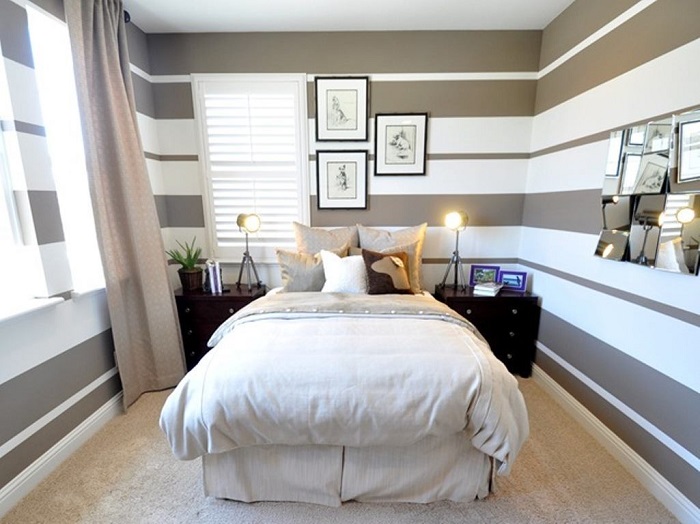 Обои с горизонтальными полосами в интерьере спальни. / Фото: remoskop.ru