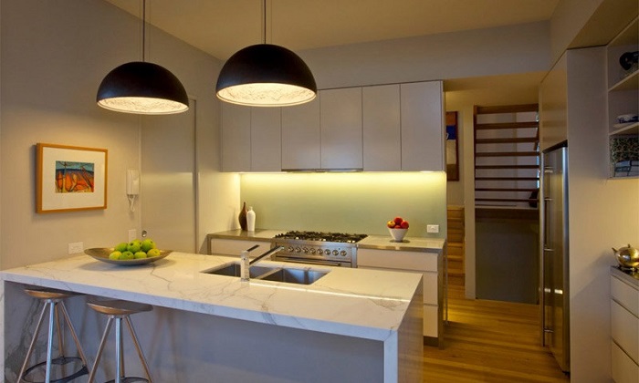 Крупногабаритные светильники в интерьере кухни. / Фото: odeon-light.by