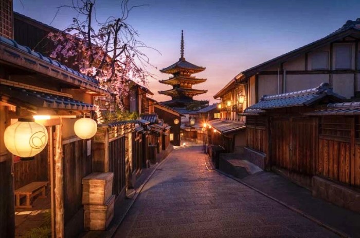 Историческая часть японского мегаполиса в вечерних огнях (Япония). | Фото: vinegred.ru/ Lee Mumford.