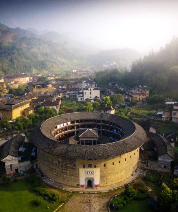 Жилой комплекс-крепость с высоты птичьего полета (Тулоу, Китай). | Фото: vinegred.ru/ Lee Mumford.