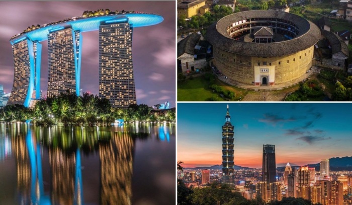 Впечатляющая азиатская культура всегда вызывала повышенный интерес и удивляла неимоверными контрастами, которые особенно заметны в архитектуре. Больше странностей можно увидеть в мегаполисах, ведь в них бок о бок сосуществуют ультрасовременные небоскребы, поражающие своим функционалом и футуристическим видом и величественные замки невероятной красоты. Особенно интересно наблюдать столь необычную игру контрастов с высоты птичьего полета, что и сделал британский авиатор и фотограф в одном лице, запечатлев потрясающие кадры архитектурных шедевров суетных городов Китая, Японии, Тайваня и Сингапура.
