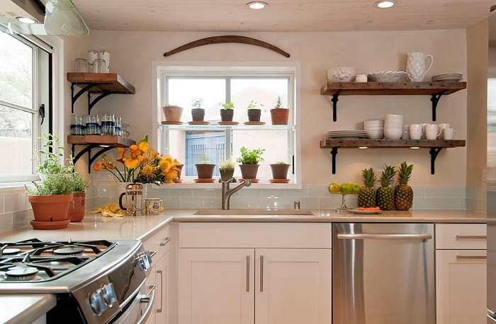 По информации Novate.ru, этот тренд последний лет активно используется многими дизайнерами. С одной стороны, такая актуальность и востребованность открытых полок понятна – они выглядят легко, изящно, не загромождают пространство и занимают минимум места в отличие от тех же навесных шкафчиков. А когда мы видим красивые фотографии с аккуратно расставленной посудой и милыми аксессуарами, то никаких сомнений не остается. Однако мы не учитываем один момент – чтобы добиться идеального снимка, декораторы и дизайнеры 10 раз переставляют тарелки, банки, чашки с места на места и лишь после того, как достигают высокого результата, загружают эти фотографии в сеть. На деле же все гораздо прозаичнее. Размещая открытые полки на стенах городской квартиры, хозяйки подписывают себе приговор, так как на посуде и на самих полках постоянно будет скапливаться пыль. Это значит, что вам придется каждый день снимать тарелки, протирать полки, перемывать посуду и заново расставлять ее. Обратите внимание: Если вы все-таки решились приобрести данную деталь интерьера, ни в коем случае не вешайте ее над плитой. В этом случае она будет покрываться не просто пылью, а липким и жирным слоем, который практически невозможно отмыть обычной губкой.