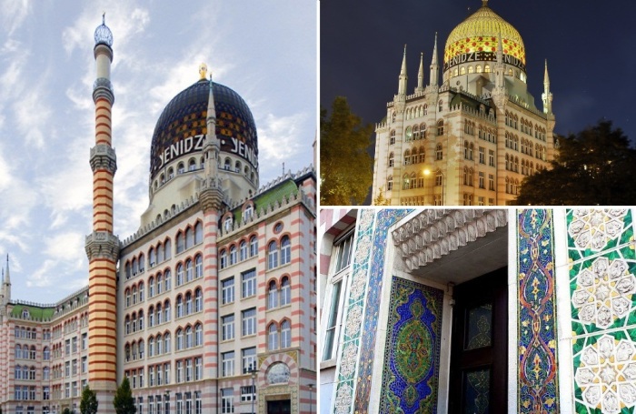Чтобы замаскировать печные и вытяжные трубы было решено строить фабрику в виде мусульманской мечети с минаретами (Yenidze, Дрезден). | Фото: de.wikipedia.org.