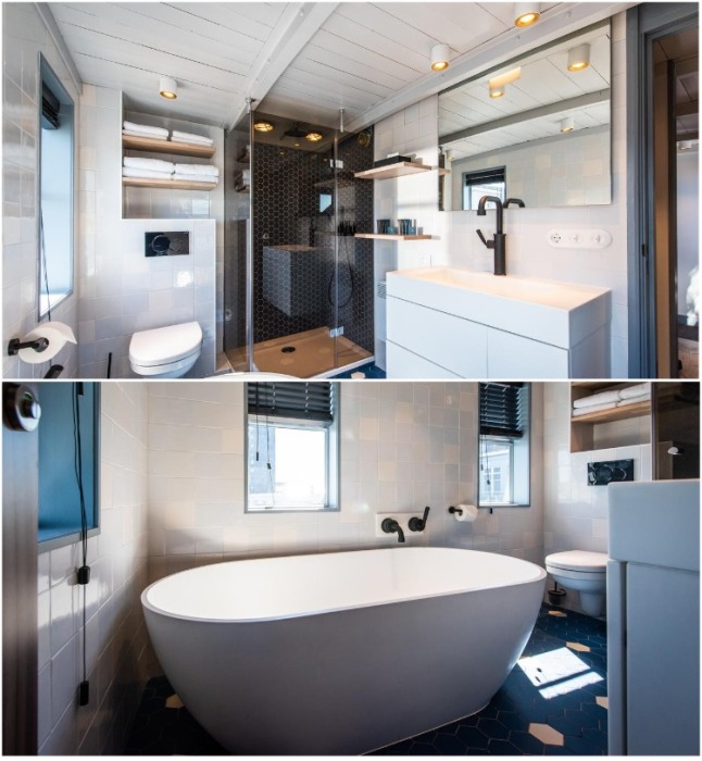 В апартаментах на башенном кране оформили полноценную ванную комнату (Yays Crane Apartment, Амстердам). | Фото: retaildesignblog.net.