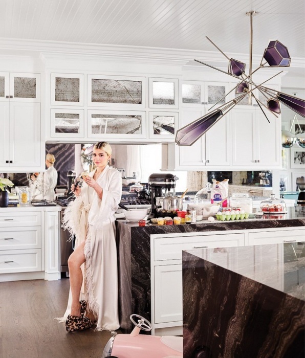 В этом году известный журнал Forbes назвал Кайли Дженнер (ей едва исполнилось 21 год) самой молодой миллиардершей в истории человечества. И это немудрено, ведь девушка принадлежит к богатейшему клану Дженнер–Кардашьян и уже не первый год владеет косметической фирмой Kylie Cosmetics. Кайли с удовольствием демонстрирует первый собственный дом, ведь им она очень гордится. Самая юная миллиардерша мира показала интерьер своего первого «взрослого» дома (Кайли Дженнер). | Фото: cosmopolitan.com. Совсем недавно журнал Forbes обновил список самых богатых людей на планете, в который вошла и Кайли Дженнер (Kylie Jenner), причем она признана самым юным миллиардером за всю историю человечества. Большого удивления это не вызвало, ведь молодая особа принадлежит к клану Дженнер–Кардашьян. Помимо реальных финансовых достижений девушку знают еще и как инфлюэнсера, ведь ее статус в соцсетях уже перевалил за 124 млн. подписчиков в Instagram. Примечание: Инфлюэнсер (от англ. influence – «влиять») – человек, который имеет влияние на определенную аудиторию посредством социальных сетей. Самый экстравагантный акцент в доме известной блогерши Кайли Дженнер — качели посреди гостиной. | Фото: jetsetter.ua. Как водится, столь знаменитые и богатые всегда оказываются в центре внимания и Кайли не стала исключением. После покупки своего собственного «взрослого дома», в котором она обитает вместе с малышкой дочерью и известным рэппером Трэвисом Скоттом, появился новый повод заглянуть в замочную скважину. Эту новость не обсуждал только ленивый. Мало того, что смаковали немалую стоимость этого особняка и его расположение, так теперь активно обсуждаются невероятные преобразования, которые удалось сделать именитому дизайнеру Мартину Лоуренсу совместно с молодой хозяйкой. Несколько комнат в доме Кайли Дженнер сделаны в любимом розовом цвете. | Фото: cosmopolitan.com. По сведениям редакции Novate.Ru, многие журналисты считают, что дом ее «наполнен юношеской энергией». На первый взгляд это так и есть. Обновленный интерьер больше похож на гламурный домик Барби, ведь преобладание розового цвета, обилие меховых покрытий, невообразимых размеров гардеробная и бьюти-комната, и наконец, качели в гостиной действительно могут стать пределом мечтаний каждой девушки. Поскольку беглый взгляд не дает возможности полностью оценить дизайнерскую задумку именитой владелицы, мы остановимся на некоторых нюансах, чтобы показать, что в ярко выраженной гламурности есть и скрытый подтекст. В интерьере дома Кайли Дженнер много неоновых вывесок. | Фото: instagram.com/ kyliejenner. Интерьер кухни Кайли Дженнер. | Фото: jetsetter.ua. Как уже сообщалось, свое «взрослое» и уже даже семейное гнездышко Кайли вместе с Тревисом приобрели еще в прошлом году (предположительная стоимость особняка 13,5 млн. дол), но преображенные апартаменты ее поклонники увидели совсем недавно, причем девушка их продемонстрировала сама. В свою обитель, которая находится в самом престижном районе Лос-Анджелеса в Беверли-Хиллз, молодые люди пригласили модного дизайнера интерьеров Мартина Лоуренса Булларда. Полной свободы у маэстро не было и даже самую незначительную деталь нужно было согласовывать с хозяйкой. В доме Кайли Дженнер преобладает гламурный стиль. | Фото: bocadolobo.com. К счастью для всех. такое сотрудничество принесло взаимное удовлетворение, так, например, Кайли на своем к