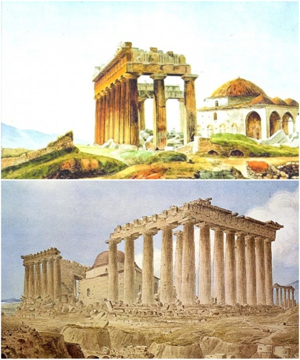 Рисунок неизвестного венецианского автора 1672—1676 гг. (Парфенон, Греция). | Фото: ru.wikipedia.org.