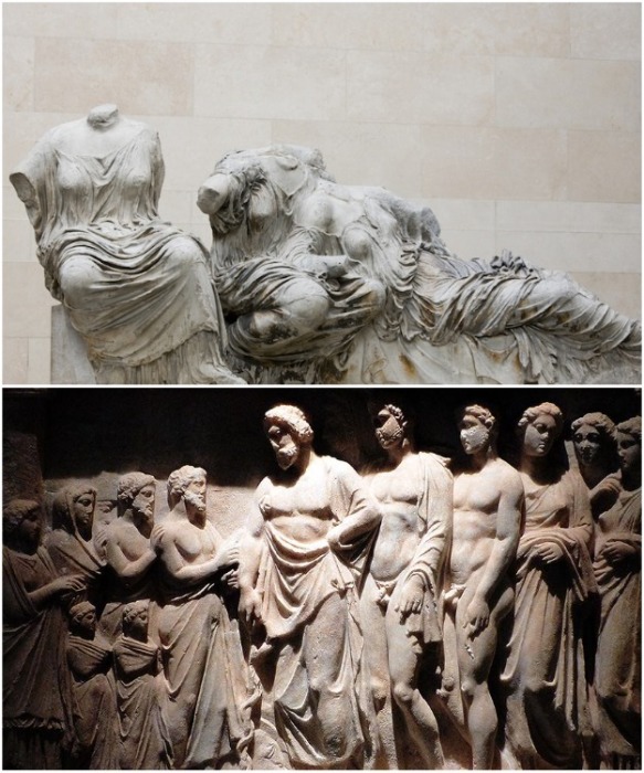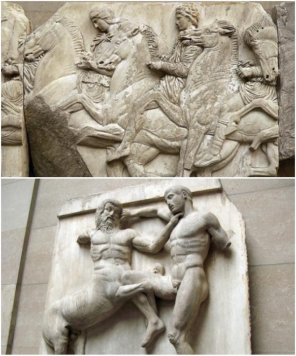 Большая часть сохранившихся скульптур из Парфенона хранятся в Британском музее. | Фото: russia.greekreporter.com. В то время, когда Греция еще находилась под властью Османской империи, шотландский дворянин Томас Брюс вывез половину сохранившихся на тот момент скульптур Парфенона. Британцы утверждают, что он получил разрешение от османов, и в 1800-1803 гг. они были перевезены морем в Великобританию и теперь находятся в Британском музее.