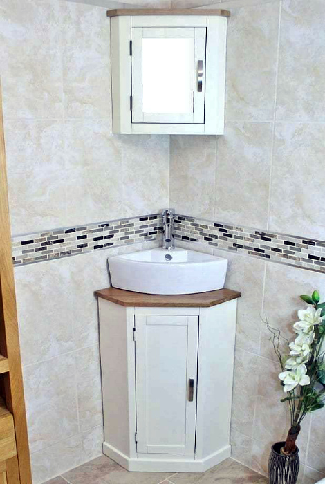Заполнение угла. | Фото: Pinterest. По мнению Novate.ru, владельцы маленьких санузлов не могут себе позволить оставлять углы пустые. Сделать эти участки функциональными поможет угловая мебель и сантехника.
