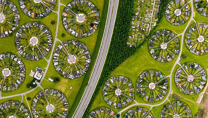Зачастую мы редко обращаем внимание на планировку городских пространств, а зря. Как оказалось, есть такие населенные пункты на планете, от вида которых просто захватывает дух, особенно если смотреть на расположение сооружений и улиц с высоты птичьего полета. Ярким примером оригинального и продуманного распределения пространства стал Br?ndby Garden City – небольшой городок неподалеку Копенгагена.