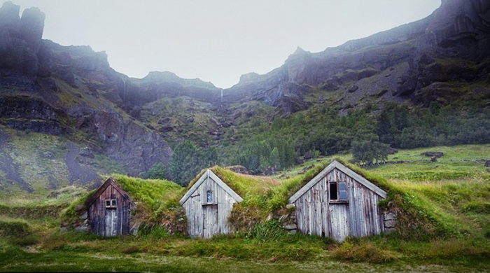 Торфяные дома это, по сути, обычные землянки, в которых жили исландцы сотни лет. Их жилище всегда состояло из деревянного каркаса, расположенного на каменном фундаменте, а для создания стен использовались блоки, созданные из травы и торфа. Зачастую это был только главный фасад, а остальные три стороны находились полностью в земле.