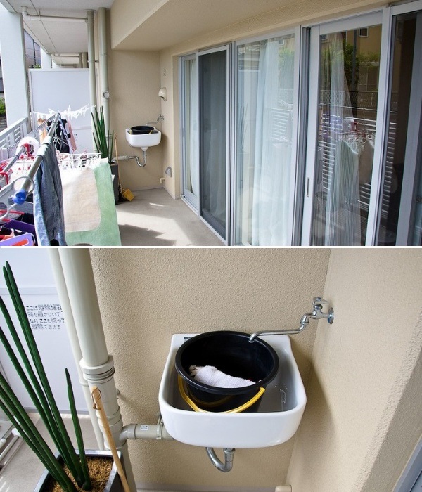 В новостройках Японии на общих балконах устанавливают рукомойники. | Фото: realt.onliner.by.