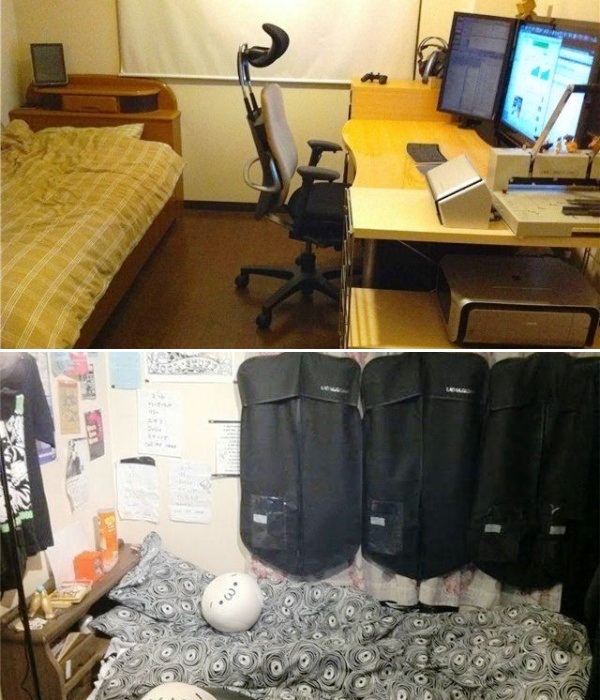 Если места совсем нет, то спят на футонах, которые днем прячут в шкаф или куда придется. | Фото: gavailer.livejournal.com.