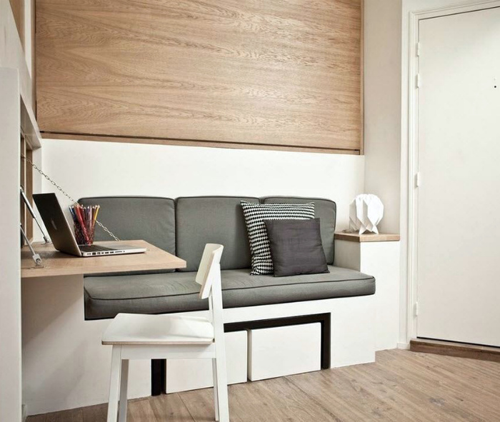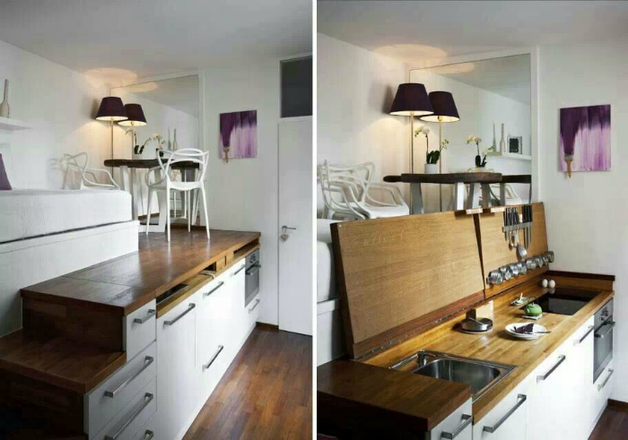 Большие идеи для маленьких квартир. К сожалению, подавляющее большинство наших сограждан не понаслышке знает, как это - жить в крошечном пространстве. В маленьких квартирах особо-то и не разгуляешься, задумывая ремонт. Однако, мы подобрали 16 классных идей, которые помогут увеличить потенциал самых маленьких пространств. 1. Уголок для чтения Маленький читальный зал. | Фото: Terra. Уютный светлый уголок для чтения с компактным диванчиком и стеллажами, которые удалось разместить под лестницей на второй этаж. 2. Рабочее место Рабочее место с полками. | Фото: We Heart It. Рабочее место, которое состоит из одних только полок и при этом выглядит весьма солидно. Отдельного внимания заслуживает роскошное кресло и пара оригинальных светильников из металла. 3. Гостиная со спальней Гостиная и спальня в одном пространстве. | Фото: jessegannontruth.com. Изумительное пространство в стиле минимализм, оформленное в черно-белых тонах со спальным местом, расположенным над зоной гостиной. 4. Зона отдыха Зона отдыха на кухне. | Фото: timbrit. Пример стильного и лаконичного оформления зоны отдыха на кухне с оригинальным столом, плавно перетекающим в ТВ-зону, компактным диванчиком и двумя мягким табуретами. 5. Барная стойка-перегородка Разделительная барная стойка. | Фото: Pinterest. Небольшая квартира открытого типа с барной стойкой из дерева, которая одновременно выполняет функции стола и разделяет две жилые зоны. 6. Необычный шкаф Шкаф с телевизором. | Фото: Lakbermagazin. Обычно для телевизора нужно покупать полку и освобождать целую стену. Однако, по мнению Novate.ru, в условиях маленького пространства это просто не рационально. То ли дело этот вместительный шкаф с двумя секциями и отдельным местом под ТВ. 7. Кубик Рубика Трансформирующаяся мебель. | Фото: fancyhouse.co. Фантастическая мебельная стенка, которая в зависимости от потребностей может превращаться в большой обеденный стол или в двуспальную кровать с тумбой. Если же ни в том, ни в другом нет необходимости данный комплект мебели может складываться в обычный шкаф. 8. Дополнительное спальное место Спальное место на кухне. | Фото: Viva Decora. Дополнительное спальное место можно организовать где угодно, даже на кухне. Благо, современные материалы позволяют без особых усилий менять планировку и создавать весьма интересные конструкции. 9. Узкая кухня Узкая, но яркая кухня. | Фото: Pinterest. Потрясающий дизайн узкой кухни, где нет громоздкой мебели, но есть две рабочие зоны, расположенные параллельно друг другу и маленький диванчик у окна. 10. Прихожая Ниша в прихожей. | Фото: 24sata. Светлая маленькая прихожая с нишей, в которой удалось разместить несколько полок: для обуви, для сидения, для головных уборов и предметов декора. 11. Полки под лестницей Выдвижные полки под лестницей. | Фото: Pinterest. Редакция Novate.ru спешит продемонстрировать вам еще один способ грамотного использования пространства под лестницей. Чтобы ниша под ней не пустовала, в ней закрепили несколько выдвижных ящиков открытого типа. 12. Кухня под прикрытием Гарнитур с подъемной столешницей. | Фото: Со Вкусом. Функциональные детали кухни, скрытые под подъемной столешницей гарнитура, позволит здорово сэкономить жилое пространство и обзавестись дополнительной рабочей поверхностью. 13. Зона отдыха Зона отдыха и рабочая зона. | Фото: Яндекс. Минималистичная зона отдыха, совмещенная с компактным рабочи