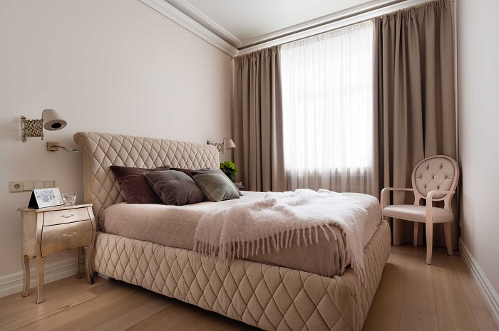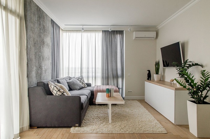 Одним из первых признаков, по которому можно судить, насколько давно был сделан ремонт, являются шторы. Именно поэтому стоит подбирать не вычурные пестрые экземпляры или модели с определенным принтом, а останавливать свой выбор на более нейтральных вариантах.
