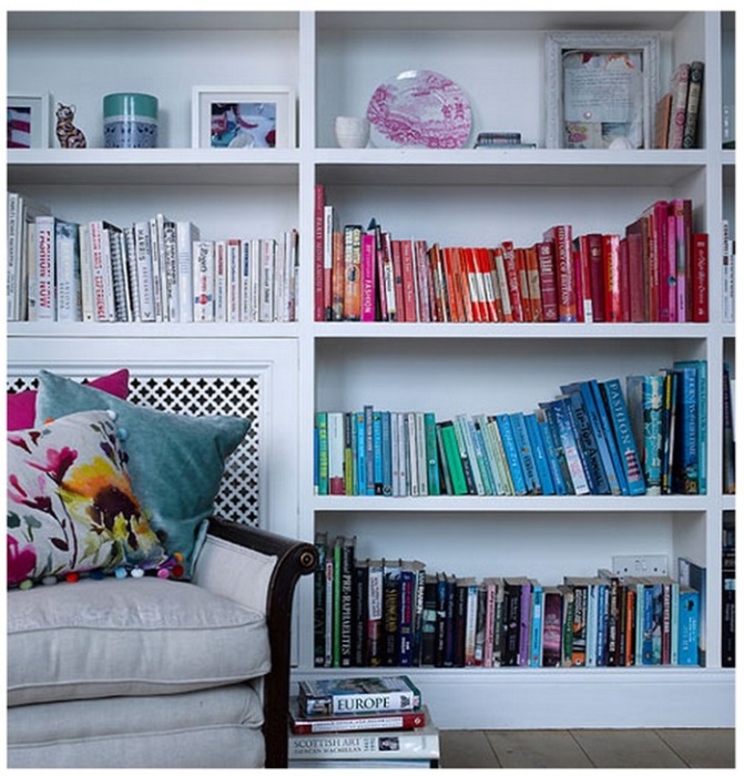 Рассортируйте книги по цветам, чтобы они красиво смотрелись на полках. / Фото: wohnklamotte.de