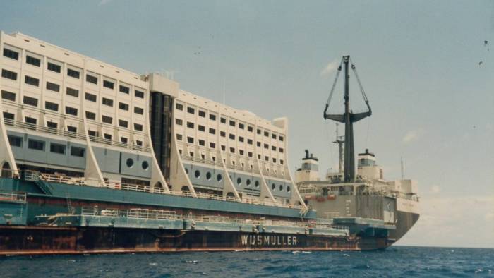Транспортировка отеля из Сингапура на место первого пристанища. | Фото: pikabu.ru.