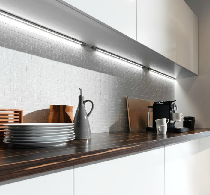 Отсутствие достаточного количества света. | Фото: green-dom.info. Одной из самых распространенных ошибок в проектировании кухни является нехватка света. Особенно остро это ощущается в зонах с навесными шкафчиками. Поверьте, это только на первый взгляд кажется мелочью. По факту, готовить или даже мыть посуду в таких условиях не комфортно. Да и зачем страдать и мучить свои глаза, если можно сразу позаботиться о дополнительной подсветке, установленной в нижней части навесных шкафчиков.