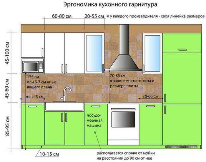 Не учитывать свой рост. | Фото: kvartira.mirtesen.ru. Вы постоянно ударяетесь головой о дверцу шкафчика, после мытья посуды ломит спину, а чтобы добраться до верхней полки, приходится подпрыгивать? Все это говорит о том, что вы не учли свой рост при покупке кухонного гарнитура. Запомните, неудачная высота и ширина столешницы, неудобное расположение шкафчиков, ручек и других комплектующих, испортят вид даже самого красивого гарнитура и принесут вам массу неудобств, прежде чем вы привыкните ко всему этому. Однако, всех этих неприятных моментов можно избежать, если заранее учесть рост и физиологические особенности тех, кто будет заниматься хозяйством на вашей кухне.