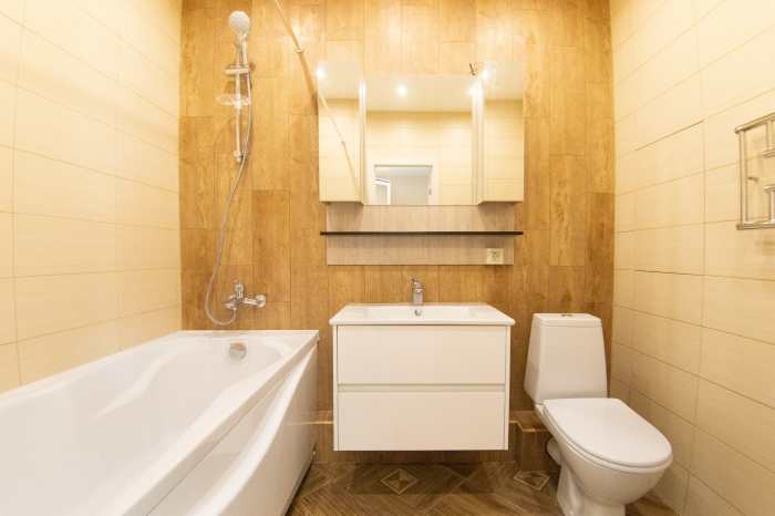 Сделать арочный проем дороже, чем прямоугольный. Под покраску стены нужно тщательно выравнивать, а обои скроют мелкие недостатки. Покрыть все стены в ванной плиткой выйдет дороже, чем сочетать плитку и краску.