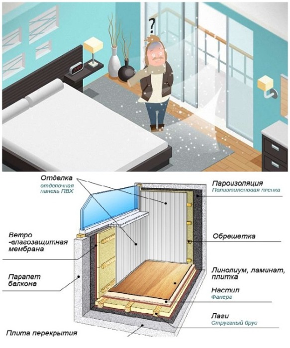 Чтобы зимой не было сквозняков и холода на балконе/лоджии, его нужно правильно утеплять. | Фото: 24tv.ua/ uteplenieplus.ru.