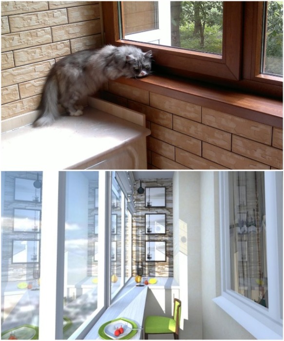 Перед оформлением балкона нужно продумать ширину подоконника. | Фото: filin-spb.ru.