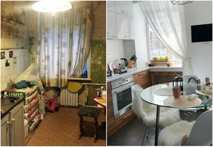 Понадобилось всего лишь 2 месяца, чтобы «убитая» кухня превратилась в стильную комнату. | Фото: nastroy.net.