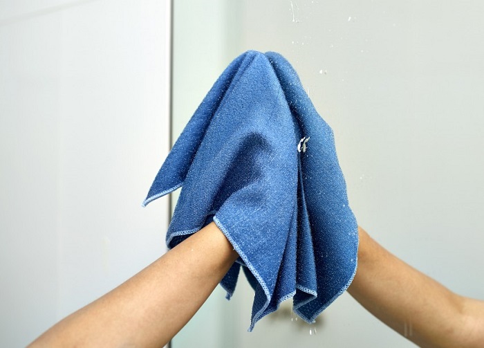 Влажная салфетка растирает пыль по зеркалу. / Фото: novinkimebeli.ru