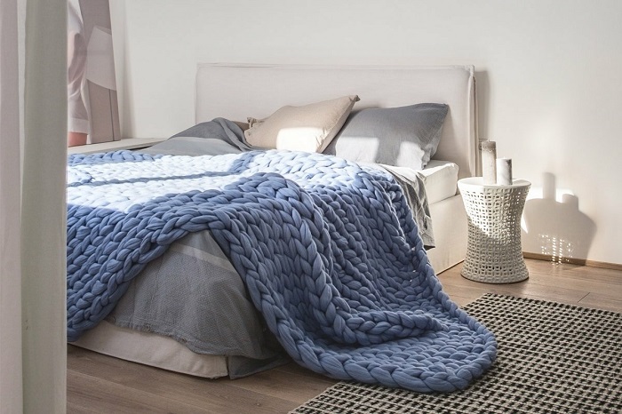 Плед практически у всех людей ассоциируется с теплом, уютом и домом. Поэтому не поскупитесь и обзаведитесь текстилем крупной вязки. Конечно, можно приобрести и обычный плед, однако сделать квартиру по-настоящему уютной сможет лишь вязаный. Только представьте: за окном хлопьями падает снег, по радио тихо играет новогодняя музыка, а вы, закутавшись в плед, сидите в кресле и наслаждаетесь ароматным какао с маршмеллоу. Потрясающая картина, правда?