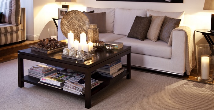 Если в гостиной есть свободное место, смело заполняйте его журнальным столиком. Многие считают, что этот предмет мебели – пустая трата денег, и он может выполнять исключительно эстетическую функцию. Однако, это не так. На столик можно положить журналы, книги, которые вы обычно читаете, пульт от телевизора. Красиво также будет смотреться небольшая ваза с цветами, настольная лампа или маленький горшок с комнатным цветком.