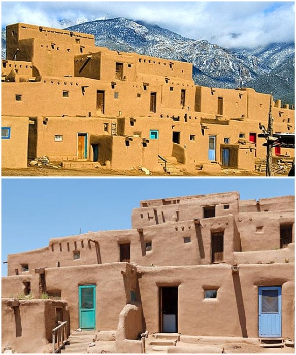 Естественно, такие преимущества не могли не использовать люди, поэтому издревле строили целые поселения. Самым известным на данный момент населенным пунктом считается деревня, созданная из многоэтажных глинобитных домов – Акома-Пуэбло в Нью-Мексико. Уже более 2 тыс. лет здесь обитают люди, которые научились строить не только дома, но и лестничные пролеты из глиняного кирпича.