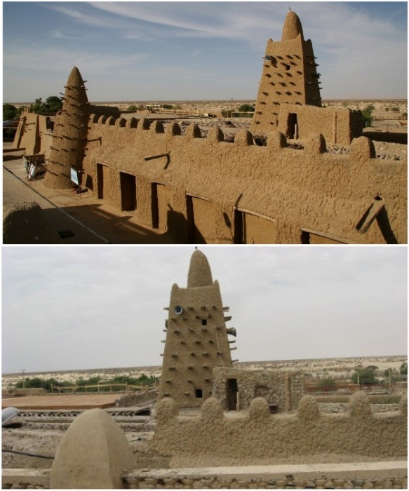 Из глины строились не только жилые дома, но и религиозные сооружения. Так, например, в городе Тимбукту, расположенном в Западной Африке, почти 700 назад была возведена Джингуереберская оборонительная соборная мечеть. Это огромное сооружение, рассчитанное на одновременное нахождение 2 тыс. человек, было построено с использование глины, волокна, соломы и дерева (в качестве опор). Учитывая историческое значение и уникальность мечети, она в 1988 г. была занесена список Всемирного наследия ЮНЕСКО.