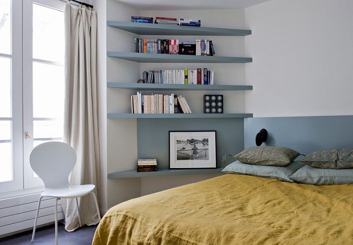 Пустующий угол очень часто создает ощущение незавершенности и непродуманности интерьера. А если говорить о крохотных спальнях, то это и вовсе непозволительная роскошь. Novate.ru подобрал для вас несколько стильных и практичных идей, которые помогут не только заполнить углы, но также украсить интерьер и грамотно разместить всю необходимую мебель и декоративные элементы. В маленькой спальне очень важно грамотно использовать каждый свободный сантиметр. Очень часто бывает, что эта комната настолько крохотная, что негде разместить даже комод или туалетный столик. Еще одна возможная неприятность – неудачная планировка, когда одну стену занимает большое окно, а посередине другой находится дверь. В результате остается всего лишь две свободных стены. И как в таком случае разместить всю необходимую мебель и еще оставить место для маневров? Ответ прост – использовать каждый угол, применяя нестандартный подход и оригинальное виденье интерьера.