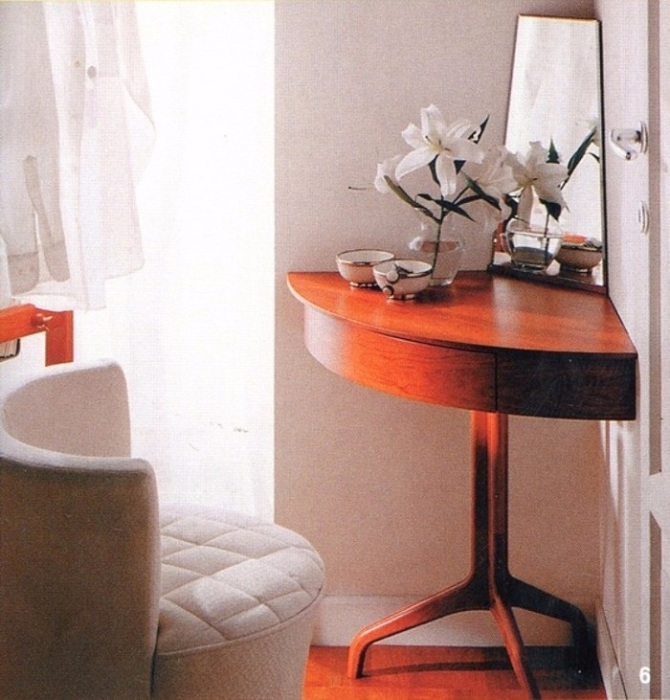 Угловой столик можно использовать в качестве туалетного или обычной тумбы. / Фото: dekorin.me