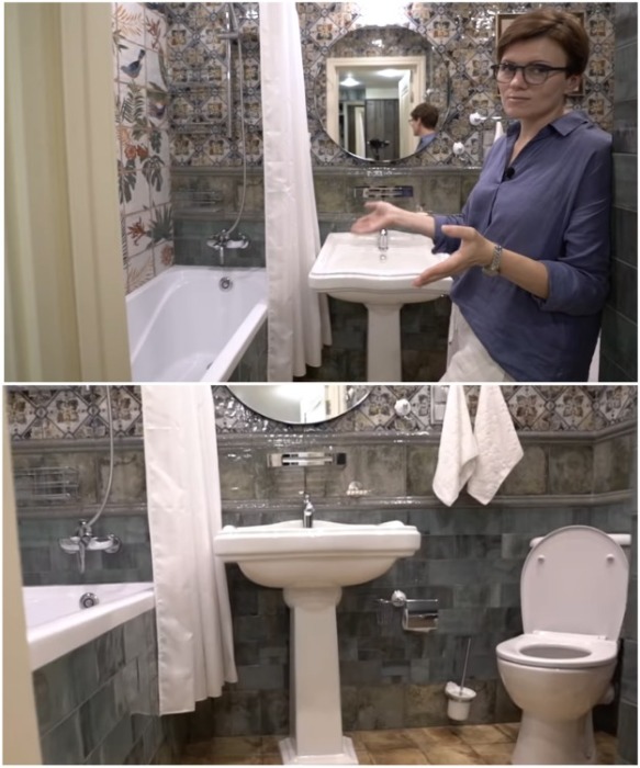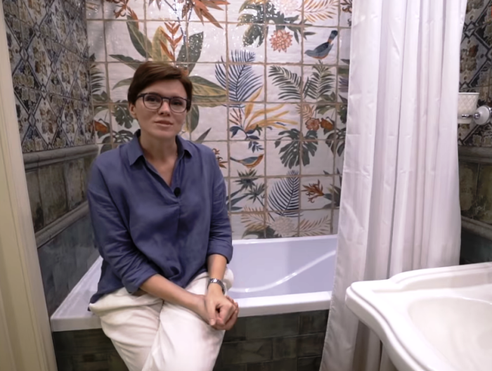Муж тоже внес свою лепту в оформление интерьера ванной – сделал панно с райскими птицами и тропическими растениями. | Фото: youtube.com/ INMYROOM TV.