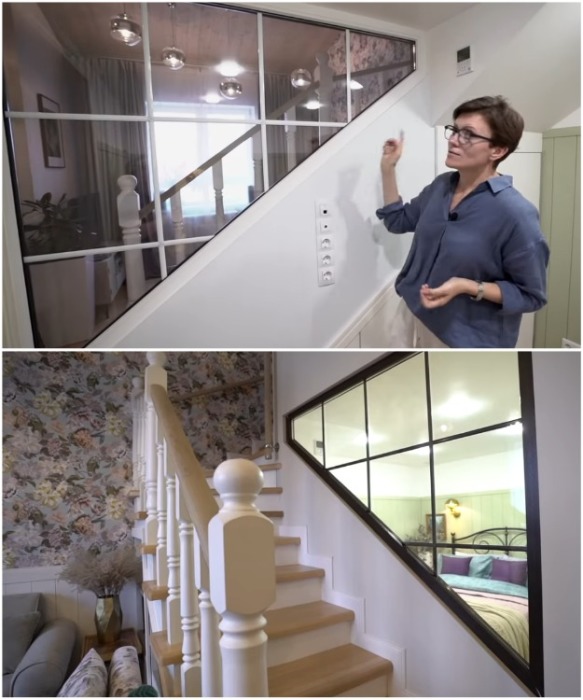 Чтобы обеспечить спальню дневным светом установили окно, выходящее в гостиную. | Фото: youtube.com/ INMYROOM TV.