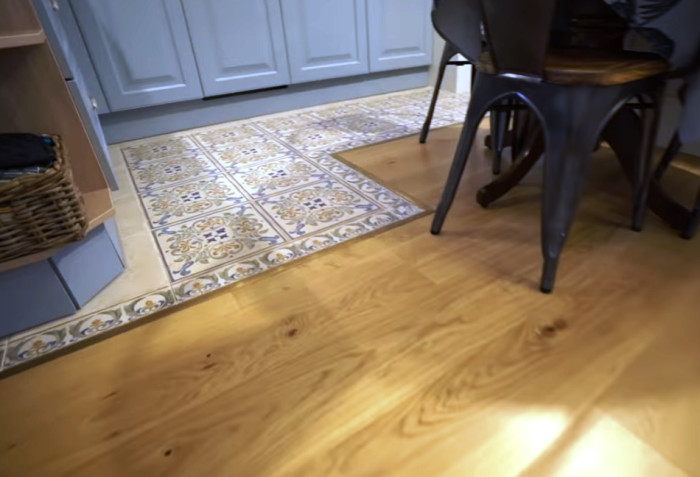 В качестве напольного покрытия в жилой зоне использовалась паркетная дубовая доска, а в мокрых – керамическая плитка. | Фото: youtube.com/ INMYROOM TV.