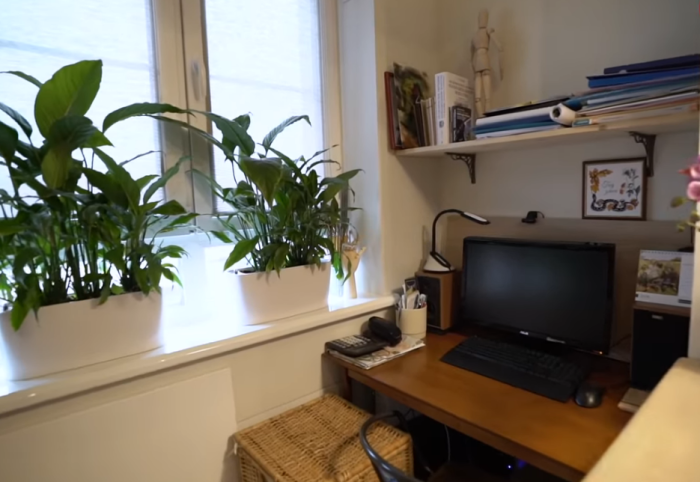 На лоджии обустроили рабочее место для Ольги. | Фото: youtube.com/ INMYROOM TV.