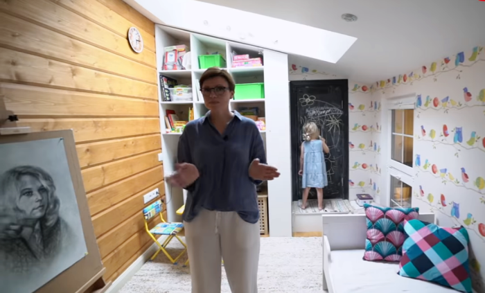 Детская комната для Арины на втором ярусе квартиры. | Фото: youtube.com/ INMYROOM TV.